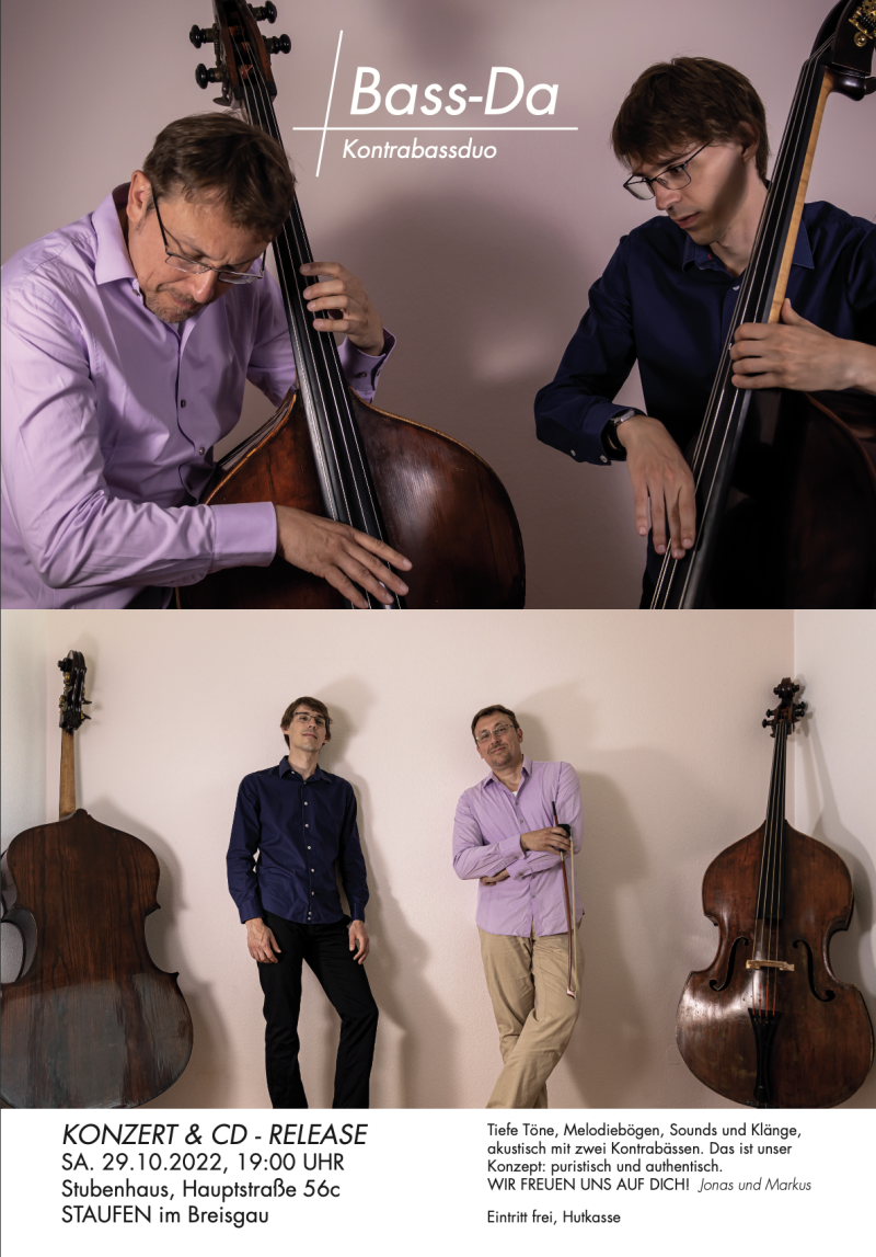 - am kommenden Samstag, den 14.08. um 20:oo beim Sportplatz in Vörstetten, spielt das Kontrabassduo BASS-DA.